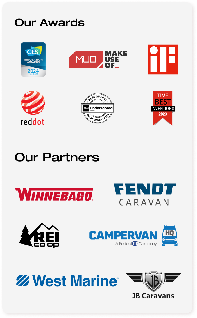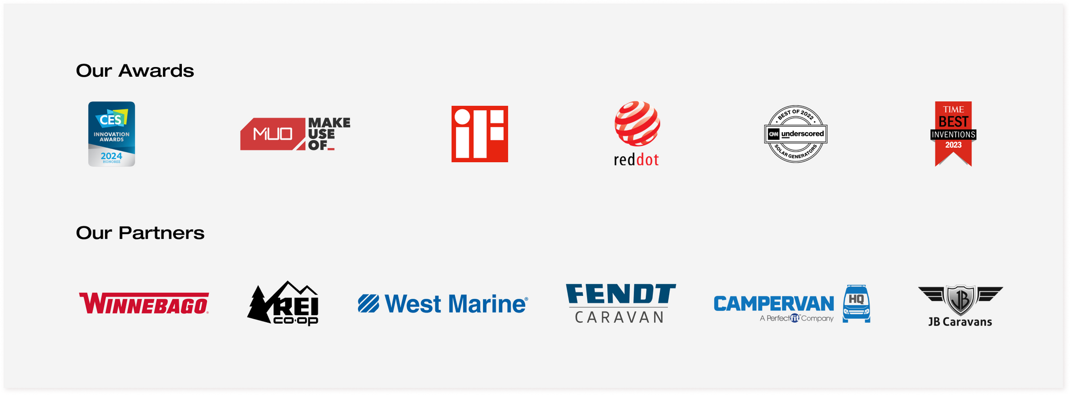 EcoFlow is sold in more than 100 countries and regions, with a user base of 2.5M + worldwide. Our products are at the forefront of industry technology and have been certified and affirmed by tech media and awards. We are authorized as official strategic partners by major RV and outdoor industry companies.