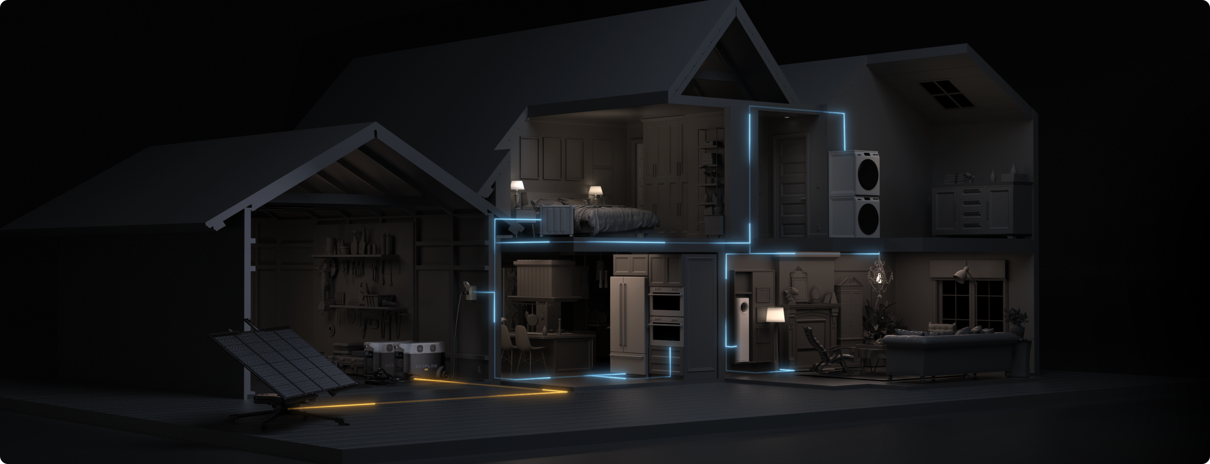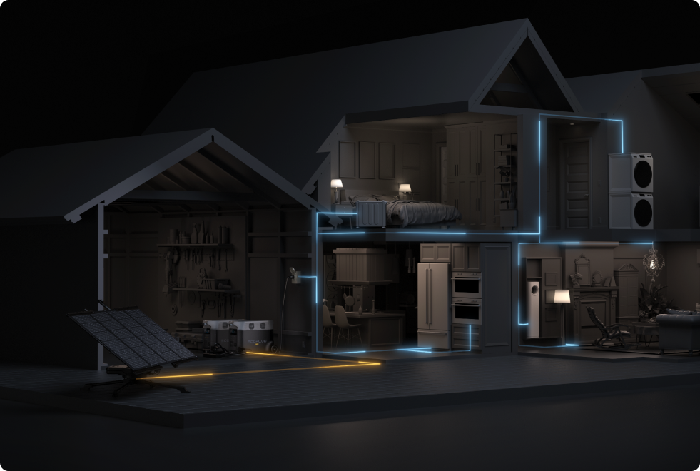 DELTA Portable Power Stations are ideal home backup solutions due to their generous storage and output capabilities. With capacities from 1-21.5kWh, EcoFlow DELTA Series power stations provide days of reliable off-grid power, ensuring security and comfort during an outage. Plus, with up to 7200W AC output, EcoFlow DELTA Pro can run some of the most energy-hungry appliances, like space heaters and central AC.