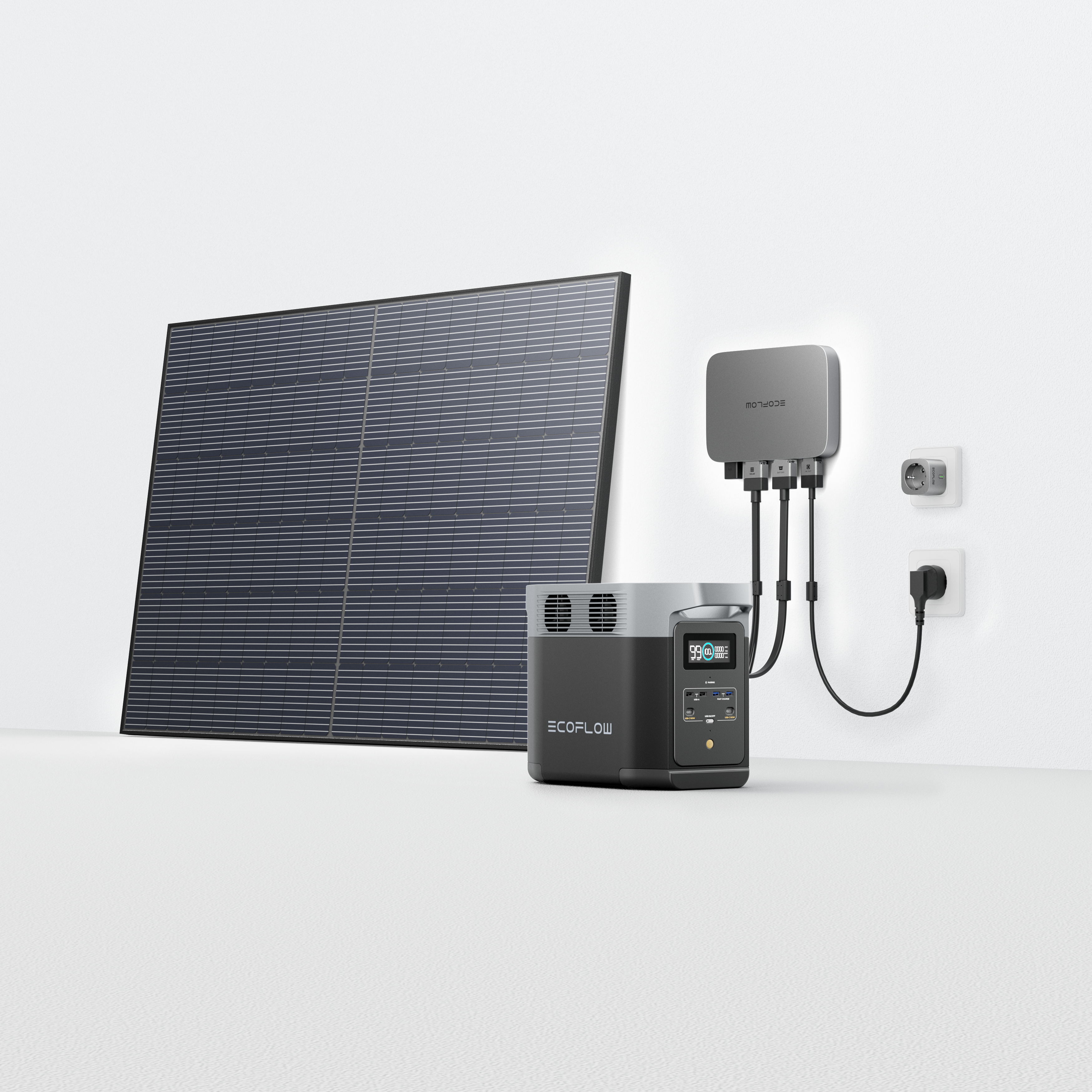 PowerStream Microinverter is compatible with all EcoFlow Portable Power Stations but it requires different cables for connection: