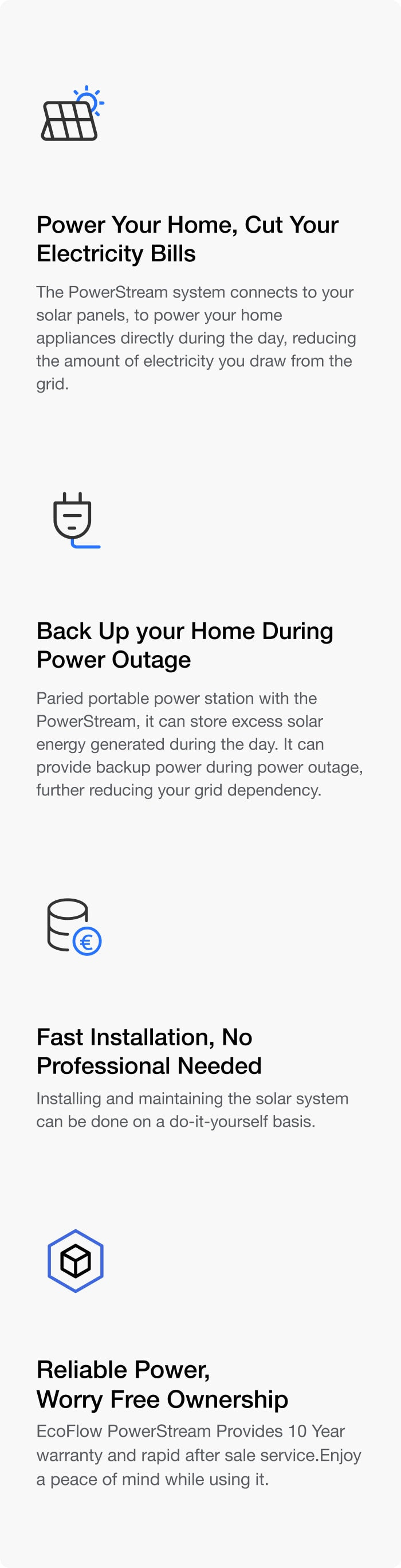 Unlock seamless power supply day and night with the EcoFlow PowerStream Microinverter. Paired with our Portable Power Stations, enjoy uninterrupted energy, even without solar panels.