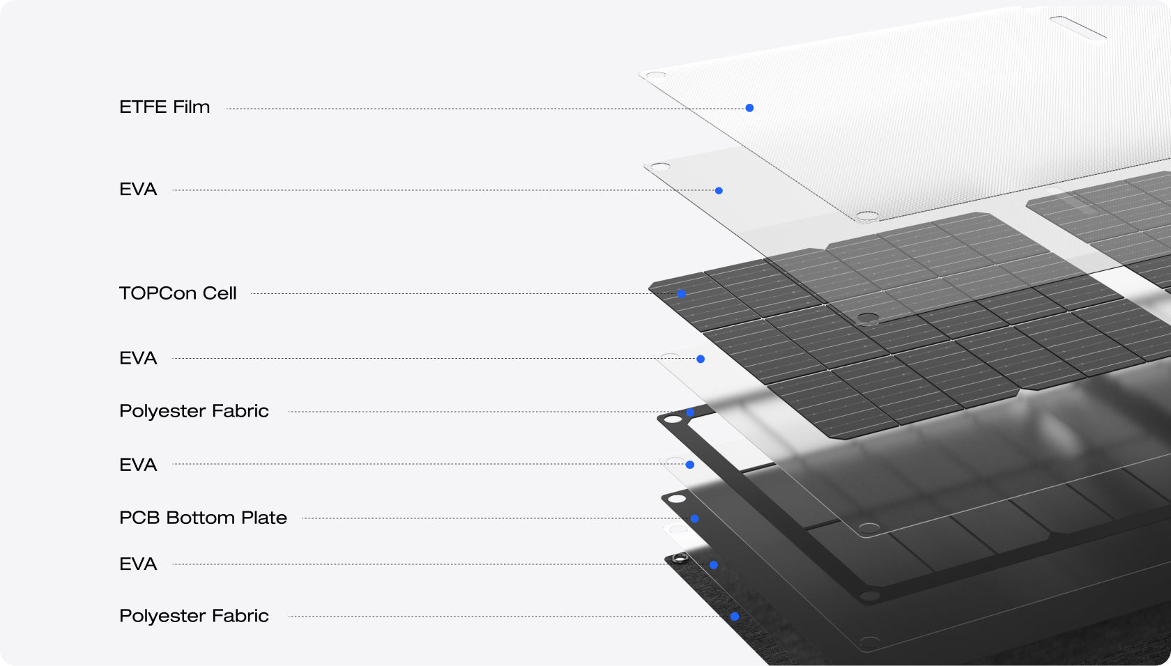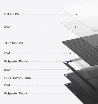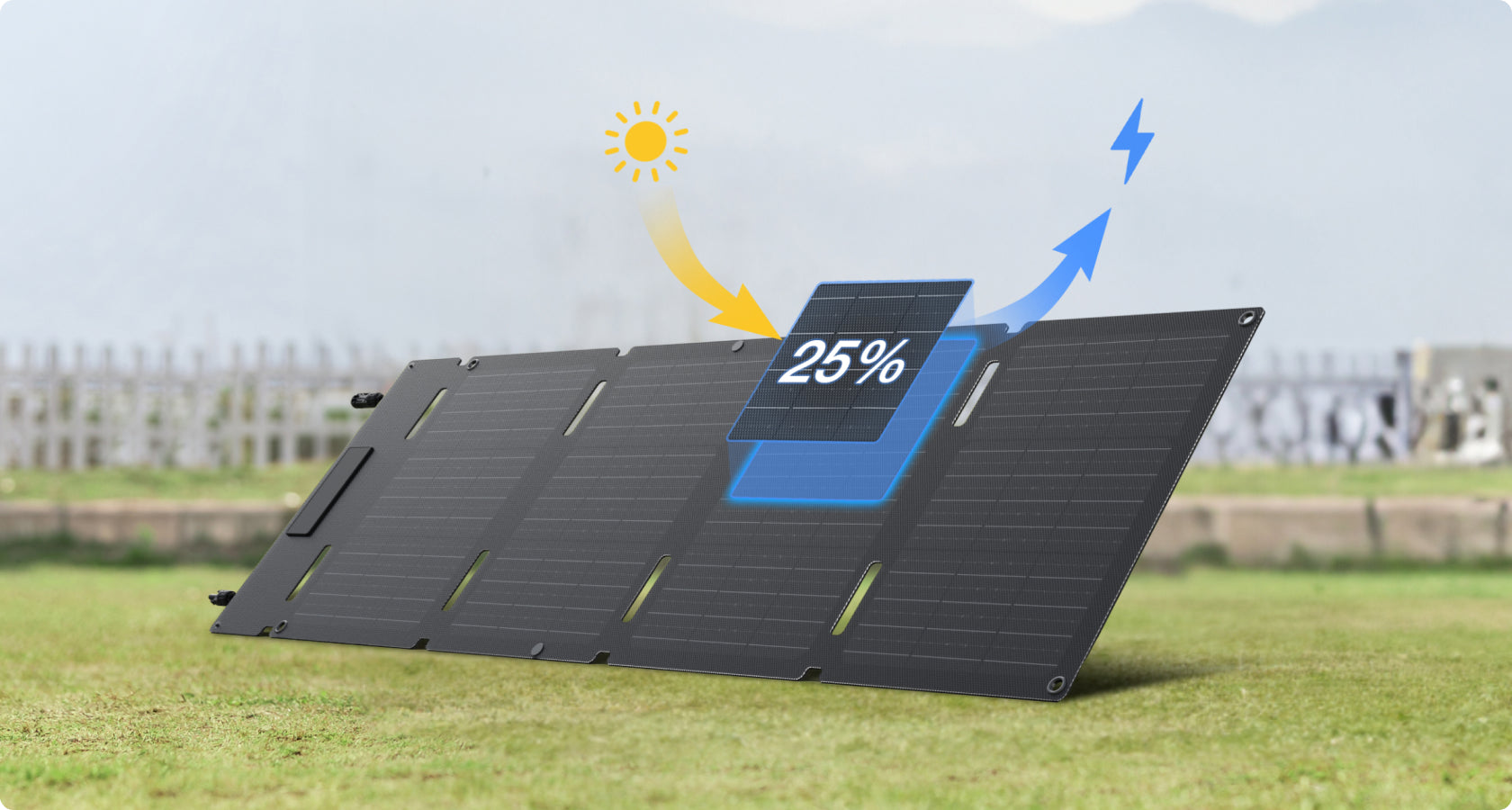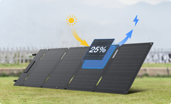 With the introduction of TOPCon solar technology, a first in the mini portable solar panel industry, we've set a new standard for conversion efficiency, achieving 25%. This enables faster charging in a more compact form. Fully charge RIVER 2 in 7 hours during peak sunlight hours, and power your electronics and essential camping appliances for a longer adventure.