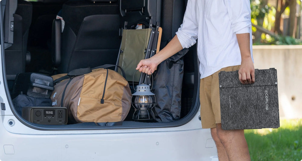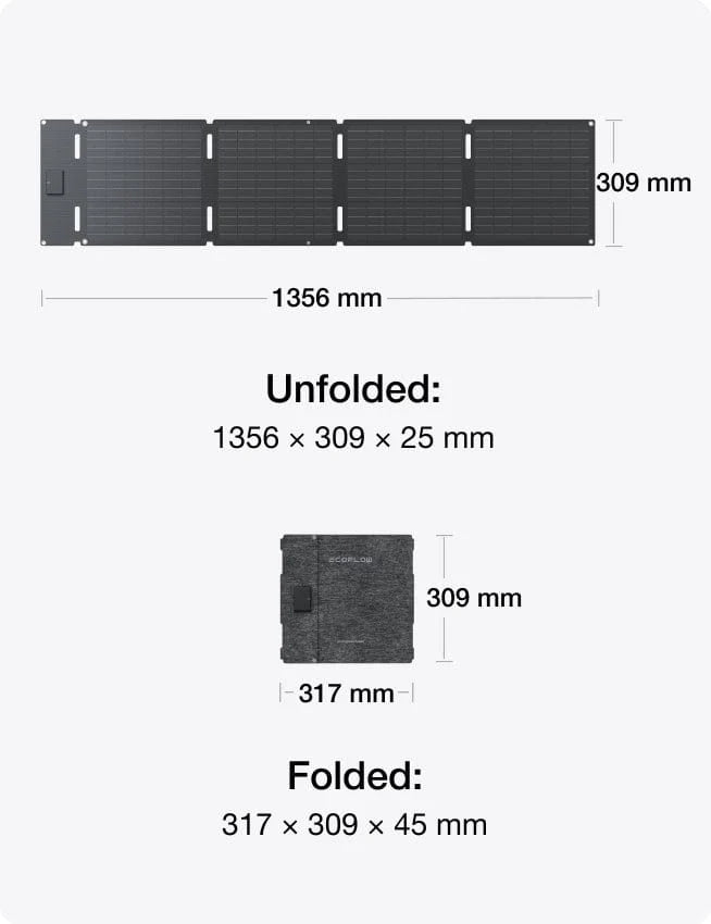With its folding four-panel structure, the portable solar paneI significantly reduces in size when folded, allowing it to easily fit into compact spaces such as backpacks, SUVs, or minivans.