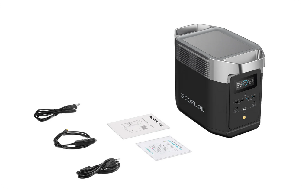 1. DELTA 2 960 2. AC charging cable 3. Car charging cable 4. DC5521 to DC5525 cable 5. User manual 6. App quick start guide 7.Warranty card