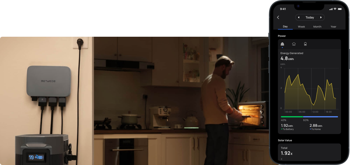 On the EcoFlow app, you can view live statistics of energy generation, charge/discharge level of power station, and the usage of the appliances connected to Smart Plugs.