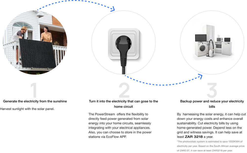 As South Africa experiences a dramatic surge in electricity prices, marking an approximate 30% increase from the previous year, the urgency to conserve power has reached unprecedented heights. Household is feeling the pinch of these escalating costs. Each time a switch is flipped, a bulb illuminated, or an appliance powered on, the resultant echo is a reminder of ever-rising bills that threaten to tighten budgets and disrupt daily routines.Introducing the EcoFlow PowerStream, a revolutionary solution in energy management that can help ease the burden of these escalating tariffs. By utilizing the PowerStream, households can potentially save approximately ZAR 3,218 over the course of a year. Imagine the endless possibilities that this savings can unlock – a heartfelt gift for a loved one, a refreshing family outing, or simply adding to your savings account.
