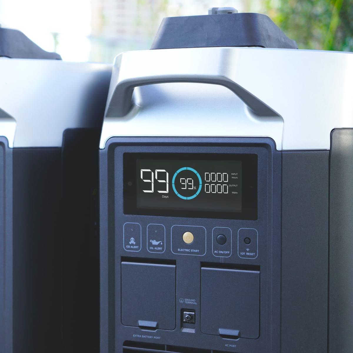 The EcoFlow Smart Generator simplifies emergency power, featuring an LCD screen, CO alert, fuel alert, and an auto shutdown – giving you everything you need to stay safe during a power outage or emergency.