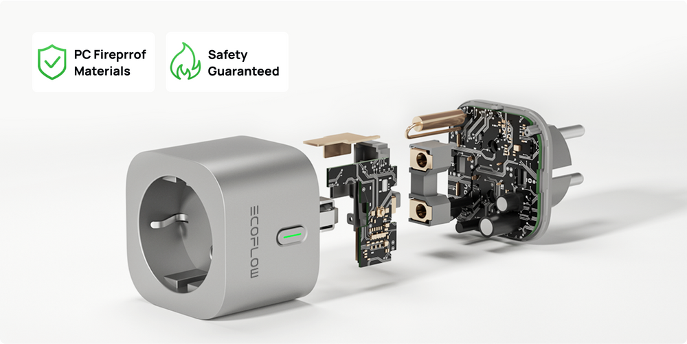 EcoFlow Smart Plug is a compact Wi-Fi socket that provides energy monitoring and smart control of appliances. It teams up with the microinverter and the EcoFlow app to offer real-time power consumption statistics and optimised electricity auto-allocation.